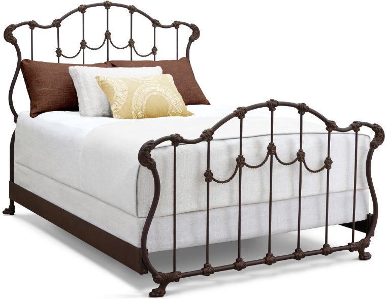 The Hamilton iron bed by Wesley Allen carries stately lines that indicate royal heritage. A shield-like head and footboard, carefully adorned with twisted metal that looks for all the world like fine wound rope or tassel, while details like whimsical claw feet add little touches to an otherwise imposing style.Read More